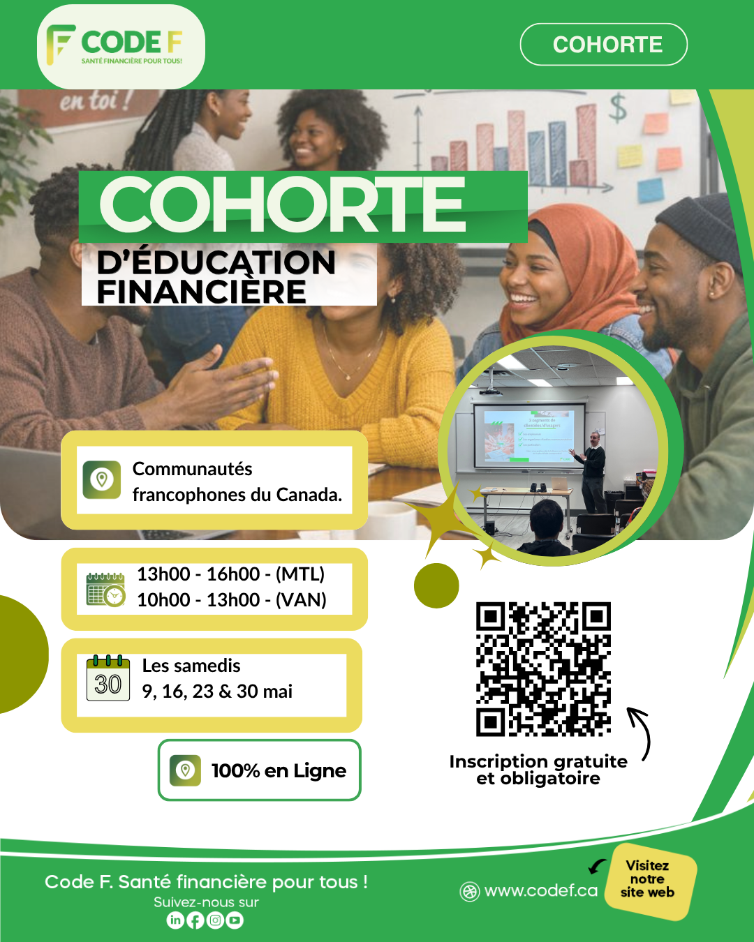 Chez Code F, nous sommes convaincus que la santé financière va bien au-delà des chiffres : c’est un véritable moteur de bien-être et d’épanouissement. C’est pourquoi nous mettons en place, année après année, des actions concrètes et impactantes pour sensibiliser, outiller et rassembler notre communauté autour de l’éducation financière.