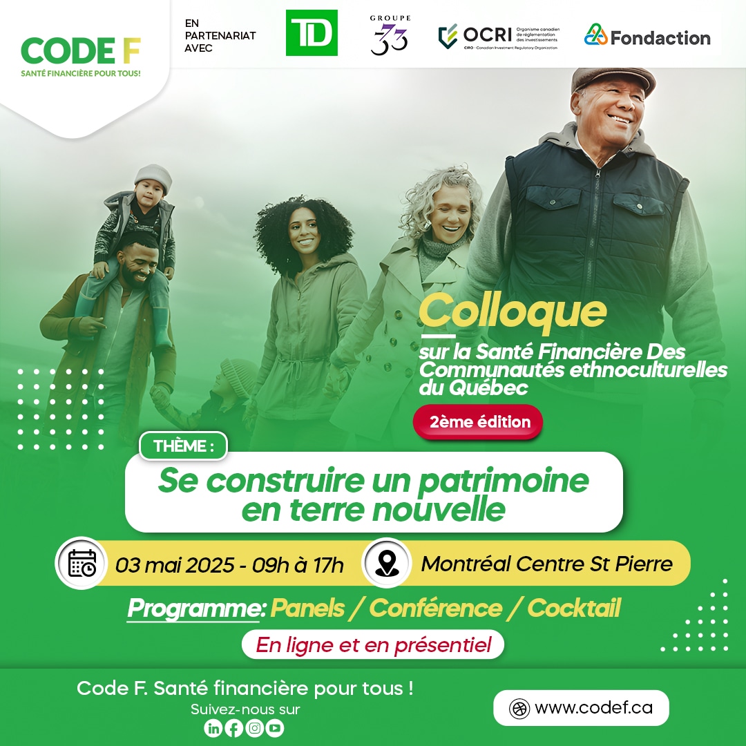 Montréal, le 10 varil 2025 – Le samedi 3 mai 2025, le Centre Saint-Pierre à Montréal accueillera la 2ᵉ édition du Colloque sur la Santé Financière des Communautés Ethnoculturelles du Québec, sous le thème : Se construire un patrimoine en terre nouvelle. L’événement, gratuit et ouvert à tous, sera également accessible en ligne.