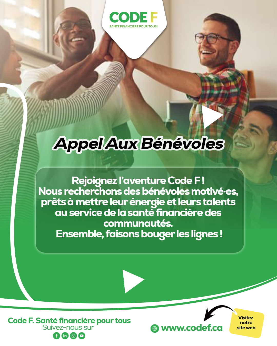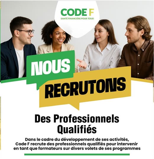 🎓 Code F recherche des formateurs(trices) experts pour ses projets éducatifs Dans le cadre de ses activités, Code F souhaite collaborer avec des professionnel(le)s passionné(e)s et expérimenté(e)s afin d’animer des ateliers et formations ponctuelles. 📘 Domaines déjà couverts Fiscalité Prévention de la fraude Planification de la retraite Gestion de patrimoine et budgétaire Accès aux services financiers Épargne personnelle et collective Investissement Création de richesse Gestion des